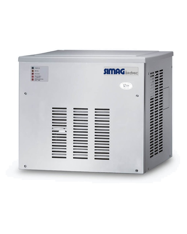 Model IM0200FM-NRBrand Bromic commercial refrigerationModular Ice Machine. Ice Type Flake. Maximum Daily Ice Production 200kg/24h. Water Consumption 7.4L/h. Ambient Temperature 43°C.